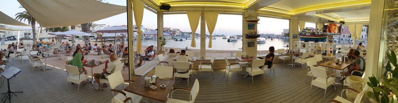 Posto magico unico e meravigliosa veduta, vista Porto Vecchio, Cala Palme. Colazione, pranzo, aperi pranzo, gelati, granite, aperitivo, apericena, cena e dopo cena .Con tanta musica e allegria. Siamo nel Porto Vecchio - Cala Palme - sul mare